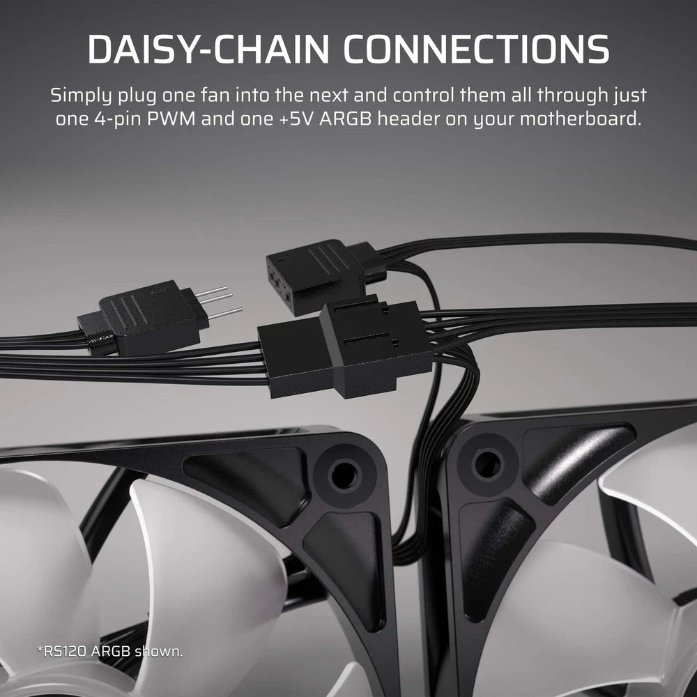 - RS-R ARGB Fans are available in black or white to suit a variety of PC builds.