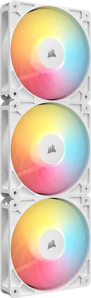 The CORSAIR RS-R ARGB 120mm PWM Reverse Fans Triple Pack enhances your PC cooling with three efficient and reliable reverse rotor fans, optimized for intake use. Daisy-chain connectors allow you to link multiple fans and control them all through a single 4-pin PWM and +5V ARGB header on your motherboard. With fan speeds up to 2,100 RPM, these fans deliver the static pressure needed for radiator cooling and general case cooling. Eight vibrant LEDs light up your build with simple +5V ARGB motherboard control. Magnetic Dome bearings provide quieter operation and extended longevity, while Zero RPM mode ensures silent operation at low loads.
